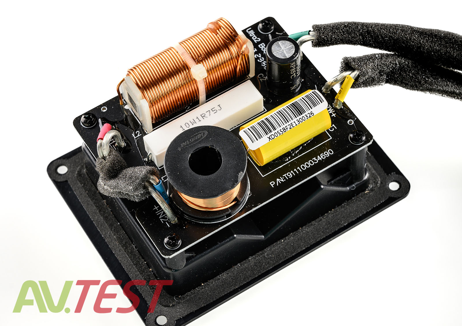 Zwrotnica to prosty układ filtrów drugiego rzędu. Mamy tu w sumie 5 elementów. W torze tweetera, który podłączono w odwróconej fazie, znalazł się kondensator foliowy, cewka powietrzna i rezystor ceramiczny, natomiast w torze woofera pracują cewka rdzeniowa i kondensator (niestety elektrolityczny). Płytkę zwrotnicy zintegrowano z podwójnym terminalem głośnikowym umożliwiającym nieco już dziś zapomniany bi-wiring. Przy tak nisko ustawionym podziale pasma rozwiązanie to może mieć sens.
